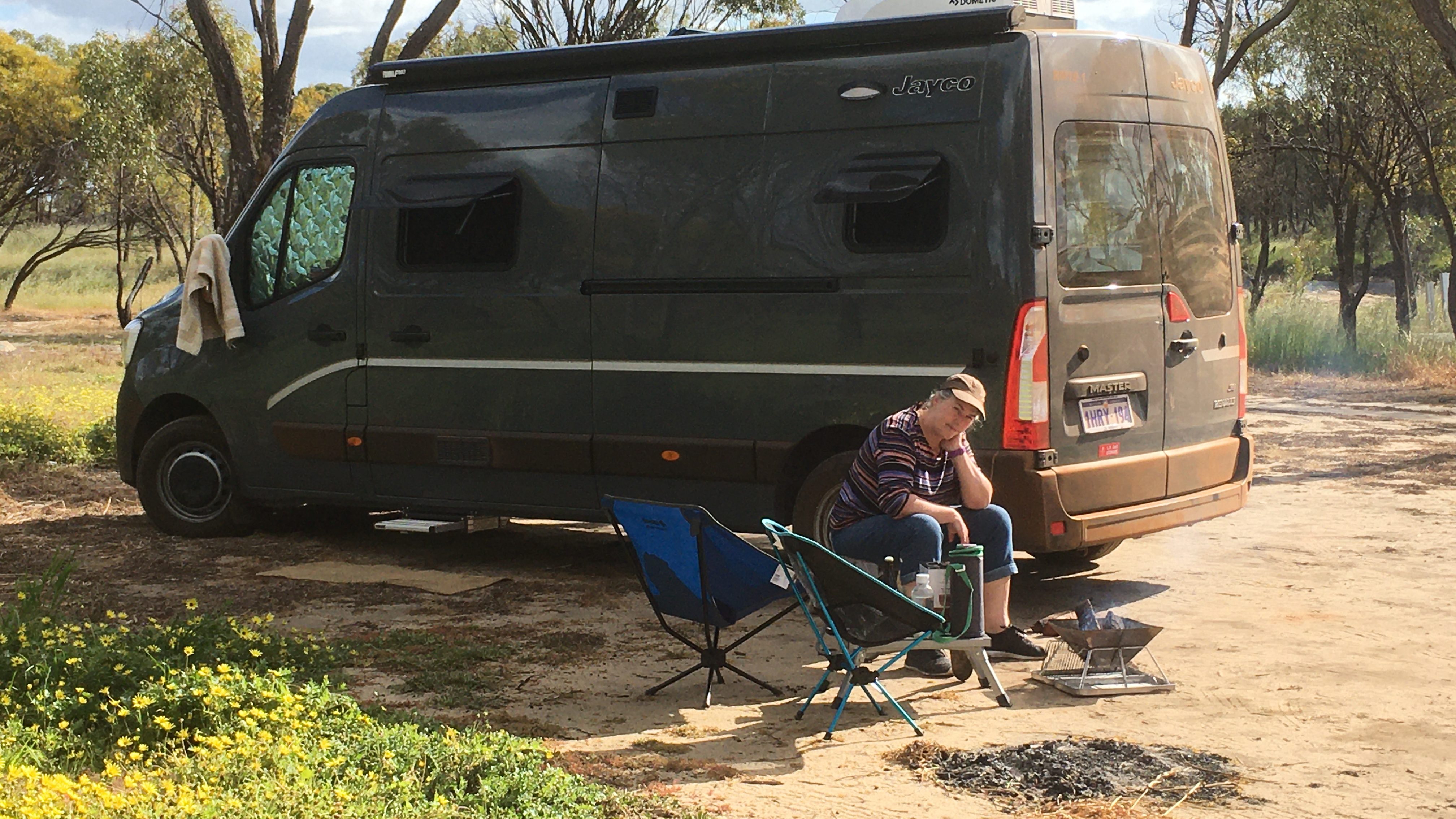 Arriving we were surprised to be one of only two campers, but that changed quickly when another couple of cars rolled up, Maybe it was the lack of little pretty flowers or the gravel road to get in there. Oak Park is an old settlement where there was a hall and a cricket club on the banks of a shallow creek leading from a salt lake, plenty of room, long drop and picnic tables. We enjoyed a fire and a wine or too when a German couple turned up asking if we had seen a crystal sculpture… A what?, apparently they were staying at Goomalling and had a sculpture trail map and there was meant to be one out on one of the roads, They couldn’t find it and thought we might have, we chatted for a bit then we went back into the van when the 747 mossies turned up and before they carried us away or ate us alive.
