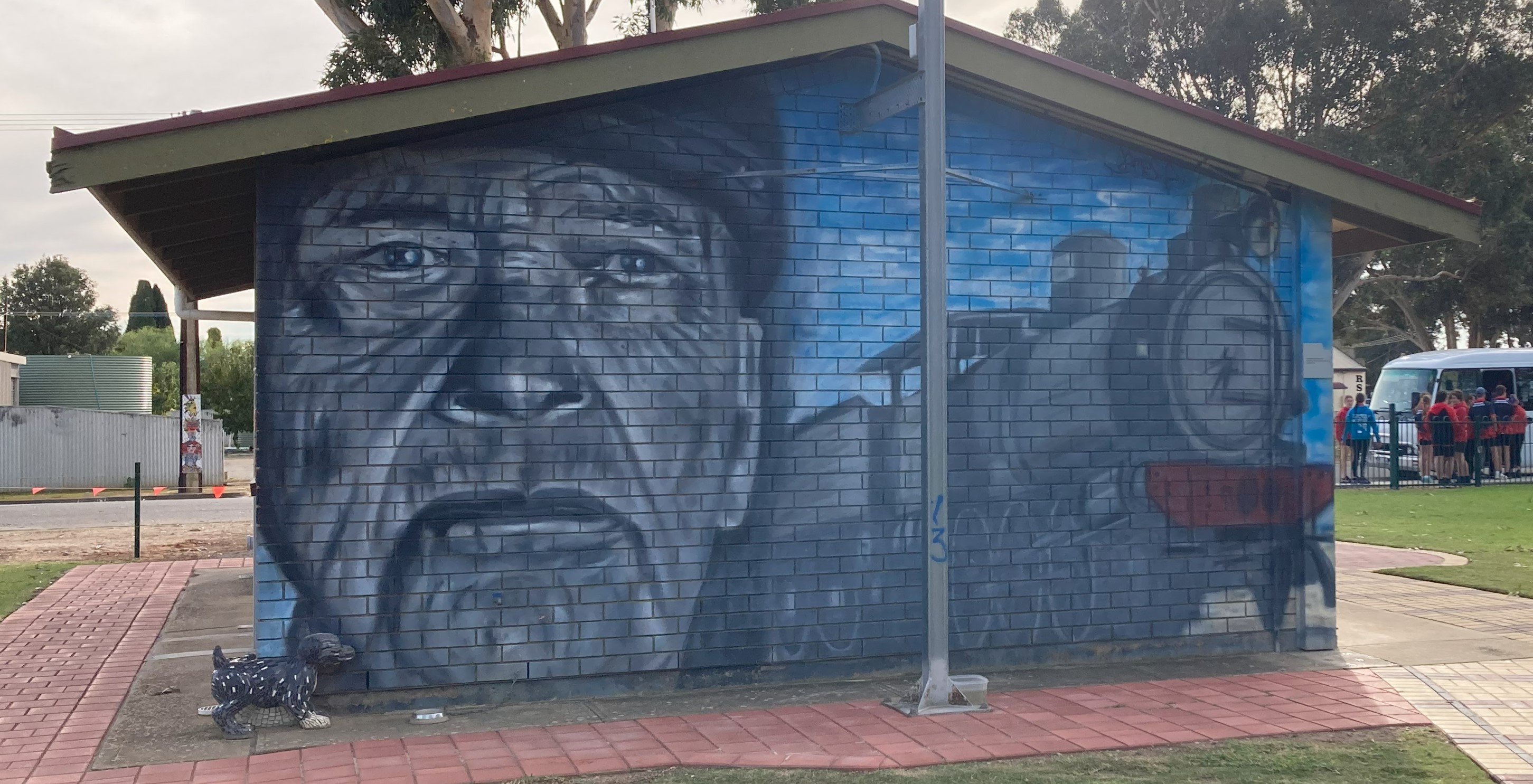 So arriving in Cummins we pulled up at the park just in time for it to be invaded by an army of school children, like a plaque of locusts they descended on the playground and toilets, so after a few pics and we got out of there.