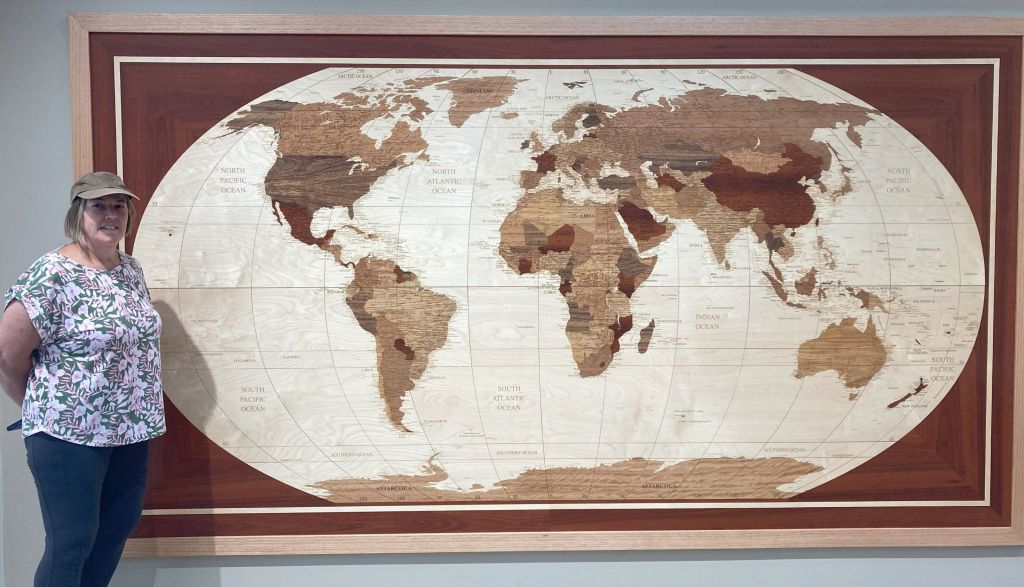 heading down the Todd Highway and back into Port Lincoln we stopped into “Rhapsody in Wood”, a place that does wood maps, engraved by laser, think parquetry but using a laser and creating a world map or indeed a map of anything with all the towns labelled and to incredible accuracy. It sounds easy but the detail was just incredible. The guys there were very friendly and happy to chat about their work, We wondered how we would continue travelling with the large world map in Little Bus, but decided to leave it there!