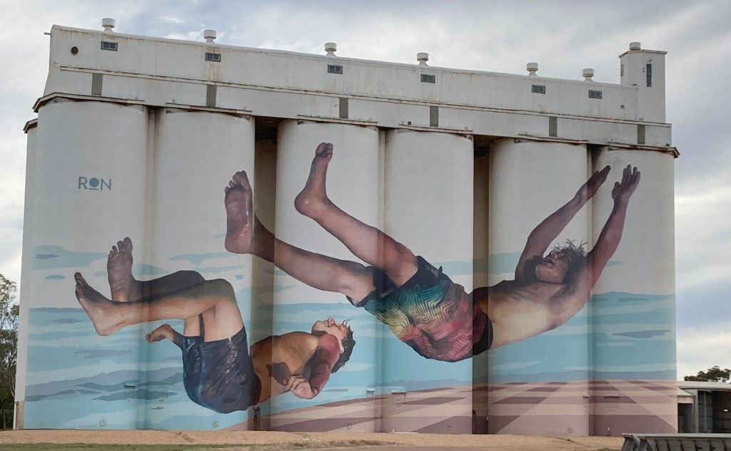 Now we had heard rave reviews of Tumby Bay off youtube, but as winter is coming the town seemed to be shutting down, the famous jetty had been closed for some unknown reason but otherwise Tumby Bay although larger than other setllments in the area, was really just the same. It did however have some Silo Art which you had to veiw from a specific spot to stop the kids from being cut in two, Standing there looking at it the wind was so brisk it actually wasn’t pleasant outside of our little bus. so back in and into town, We did manage to get fish and chips for a fair price, Good but not as good as our home chippy shop. The toilets just behind the senior citizens centre, where we had parked, made me smile as the gents had a condom disposal machine , $1 gets you a rugged and ready. Hadn’t seen one of those machines in almost 20 years! Go the Senior citizens yay!
