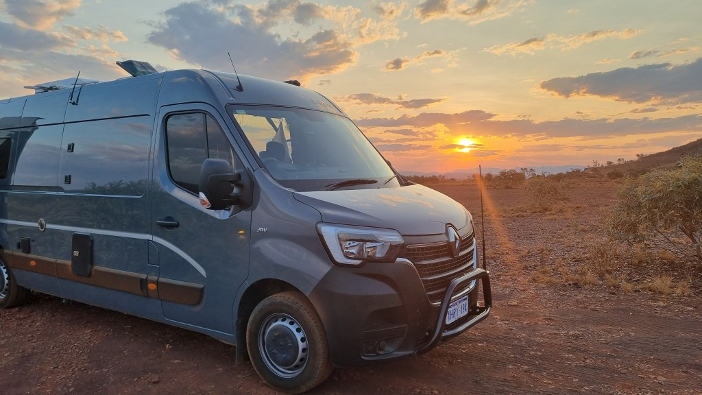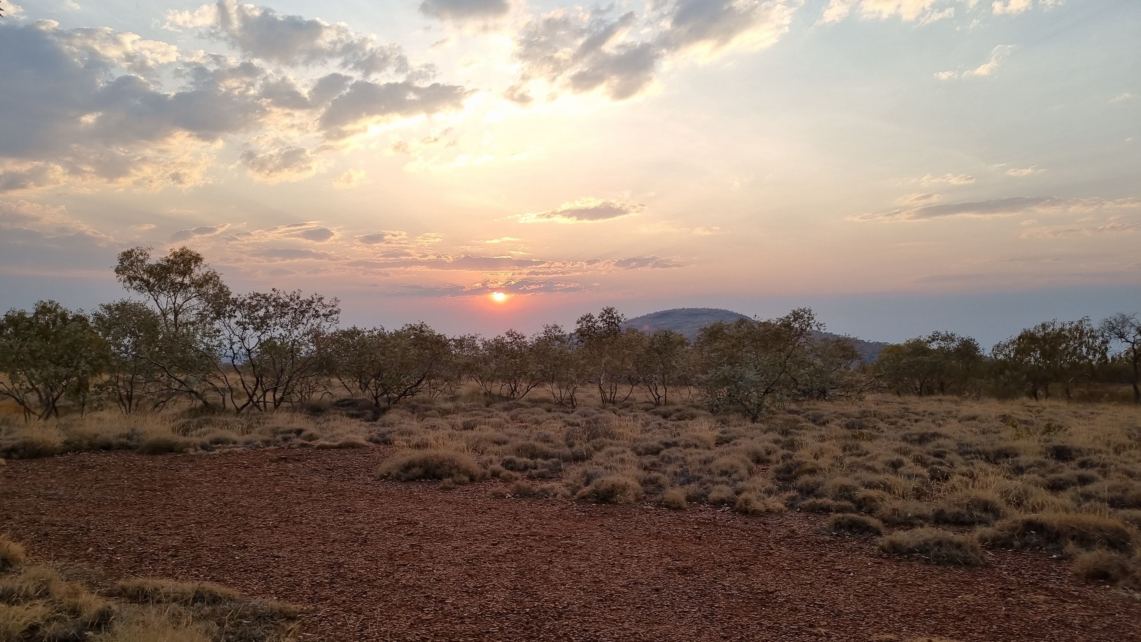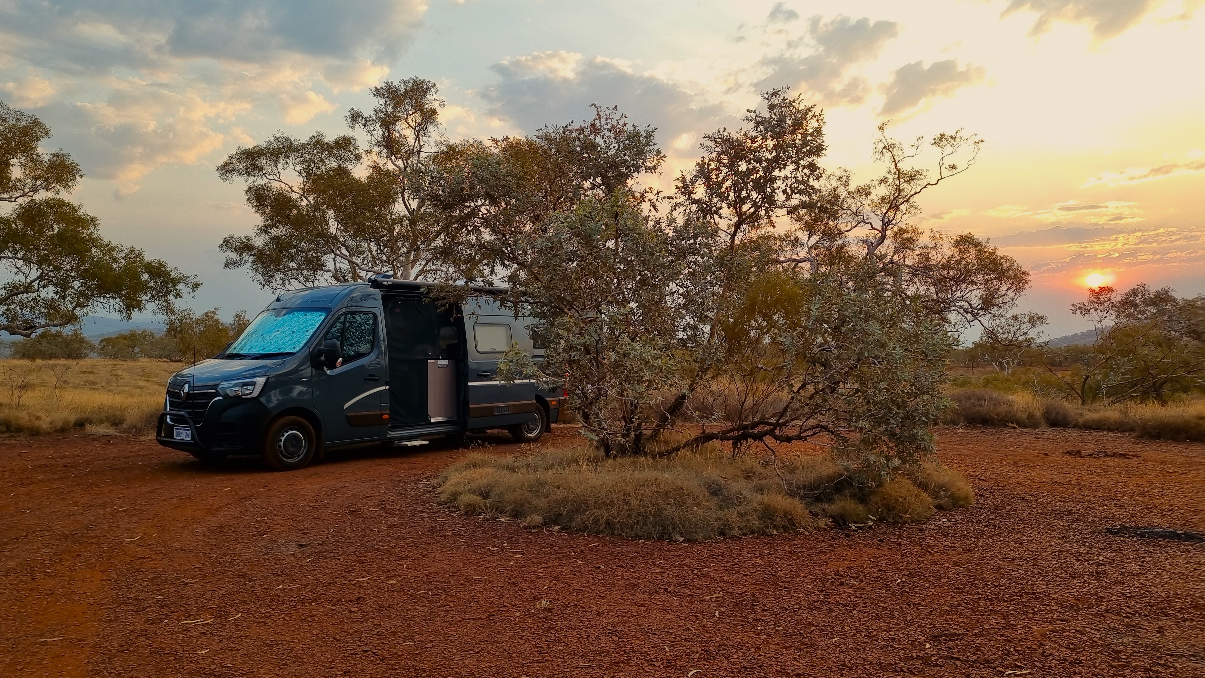 Back up the steps and then back to Little Bus. We spent a bit more time in the Dales Gorge area, then finally it was time to head off to camp. So, back to the highway and up to Albert Tognolini lookout, a free camp overlooking a gorge just near the Auski roadhouse, and yet another amazing sunset.