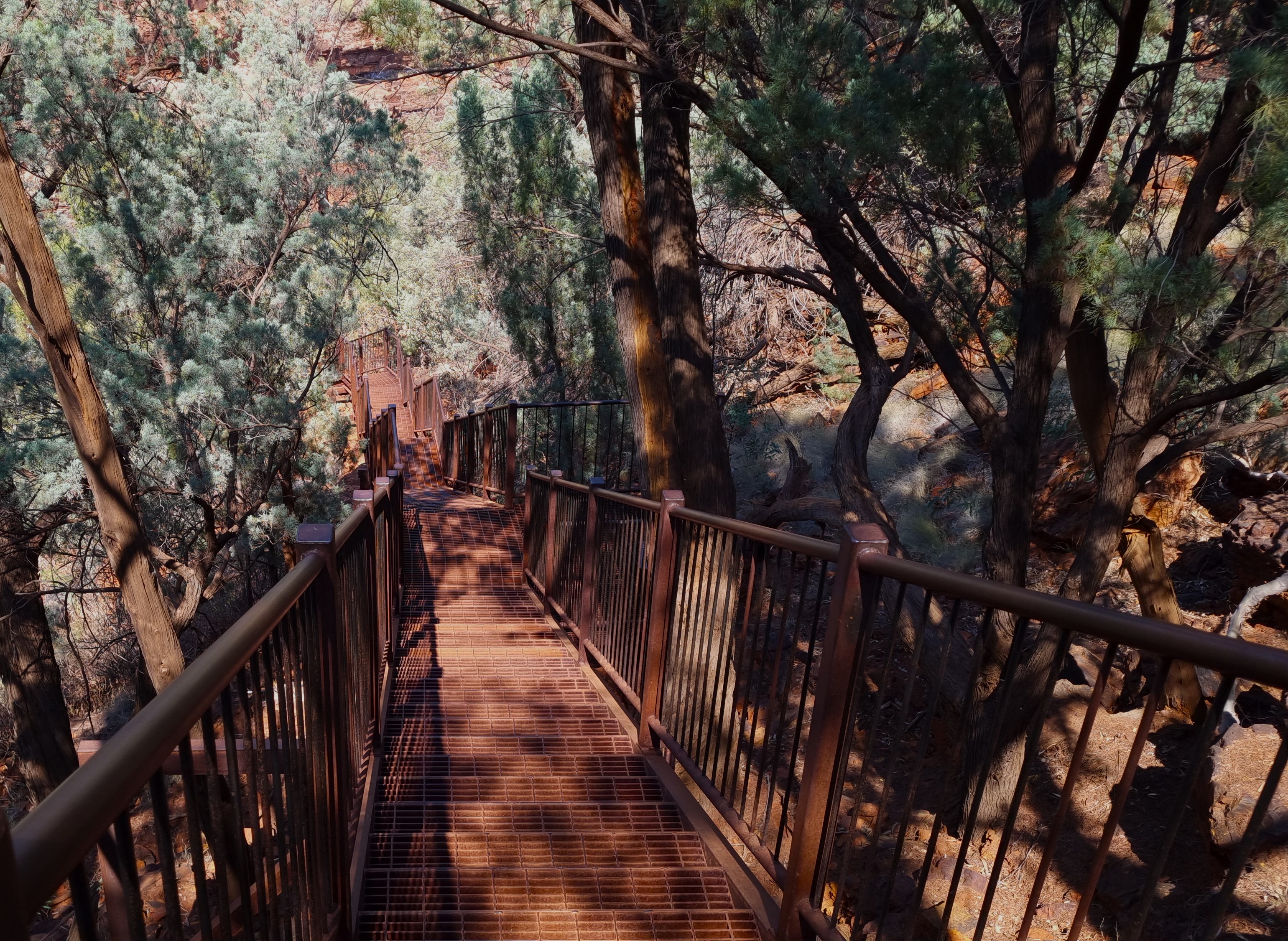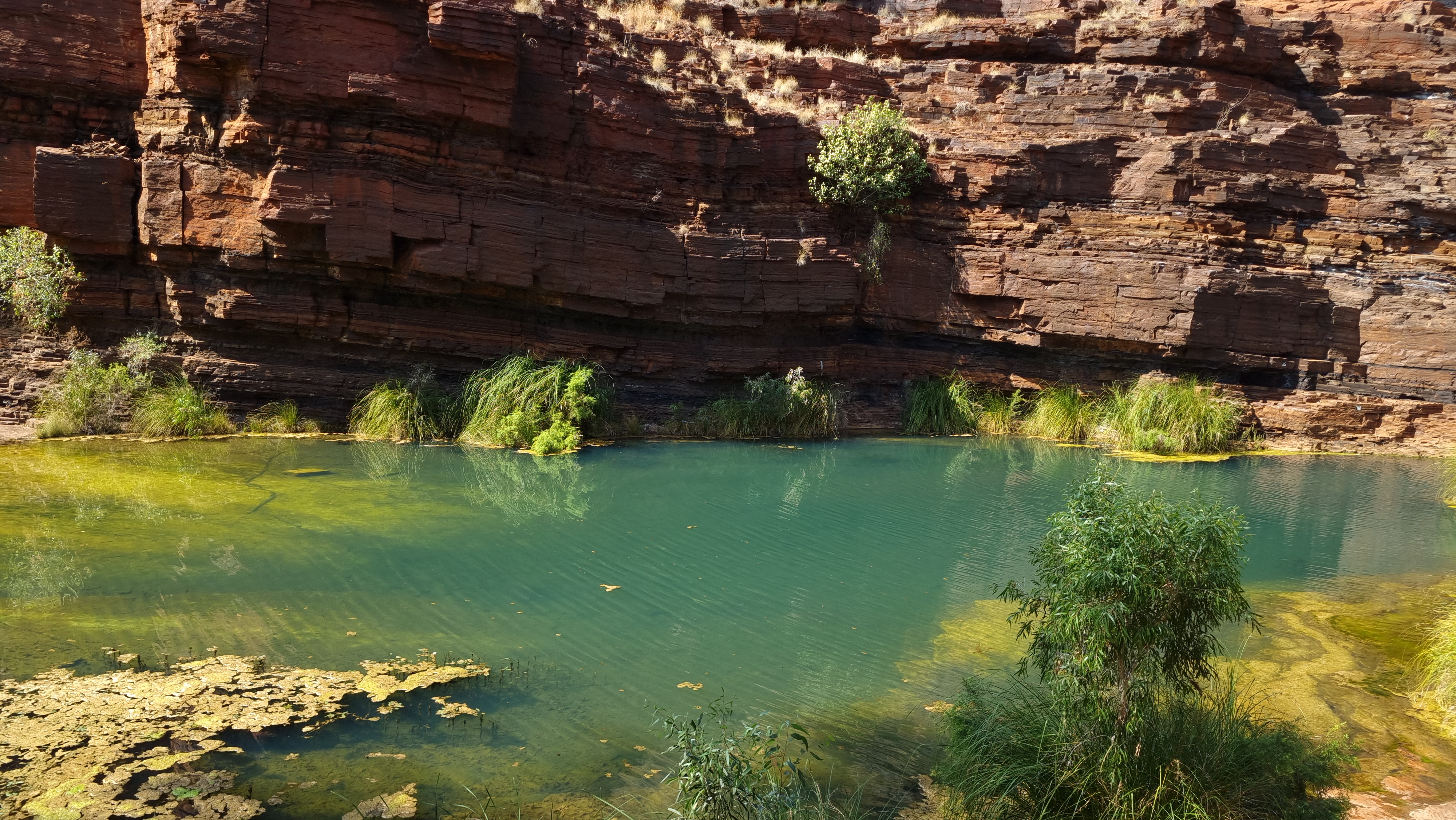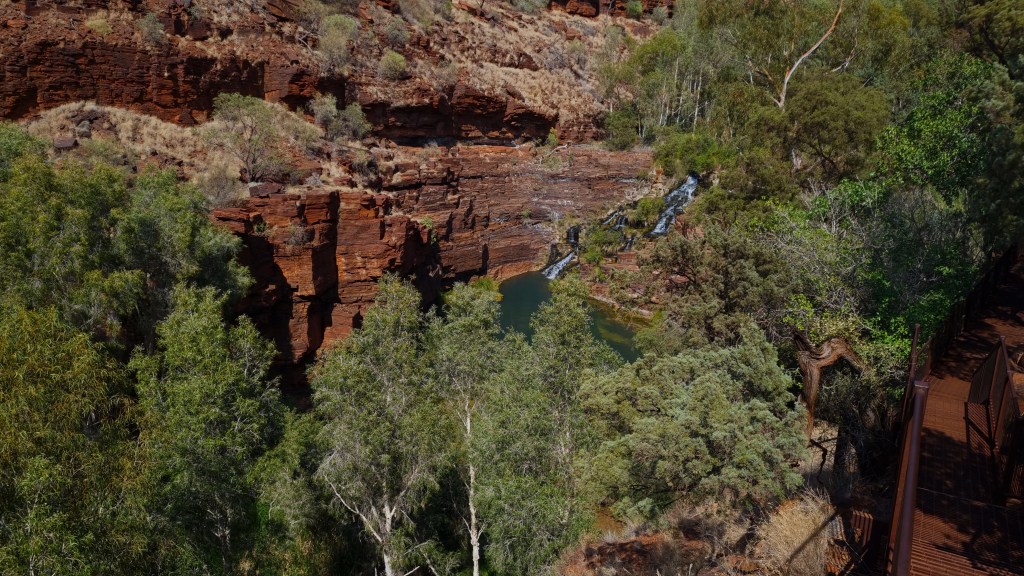 But we returned, parked the little bus in a full car park, changed into our bathers, and went back to the gorge before heading down the steps. It’s the only place to swim at this end of Karijini, and the steps are the only option, so make sure you have everything with you before you go down.