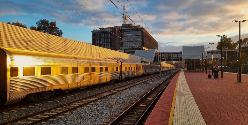 With bleary eyes we clawed into consciousness, stumbling awake, on a Sunday morning when the alarm came on, and though it was tempting to turn it off, roll over and drift back to sleep, it was with a sense of excitement that we crawled out from the warmth into the cold early morning. Today was “Train day” the day where we were going to board the Indian Pacific for a 4 day journey across Australia.