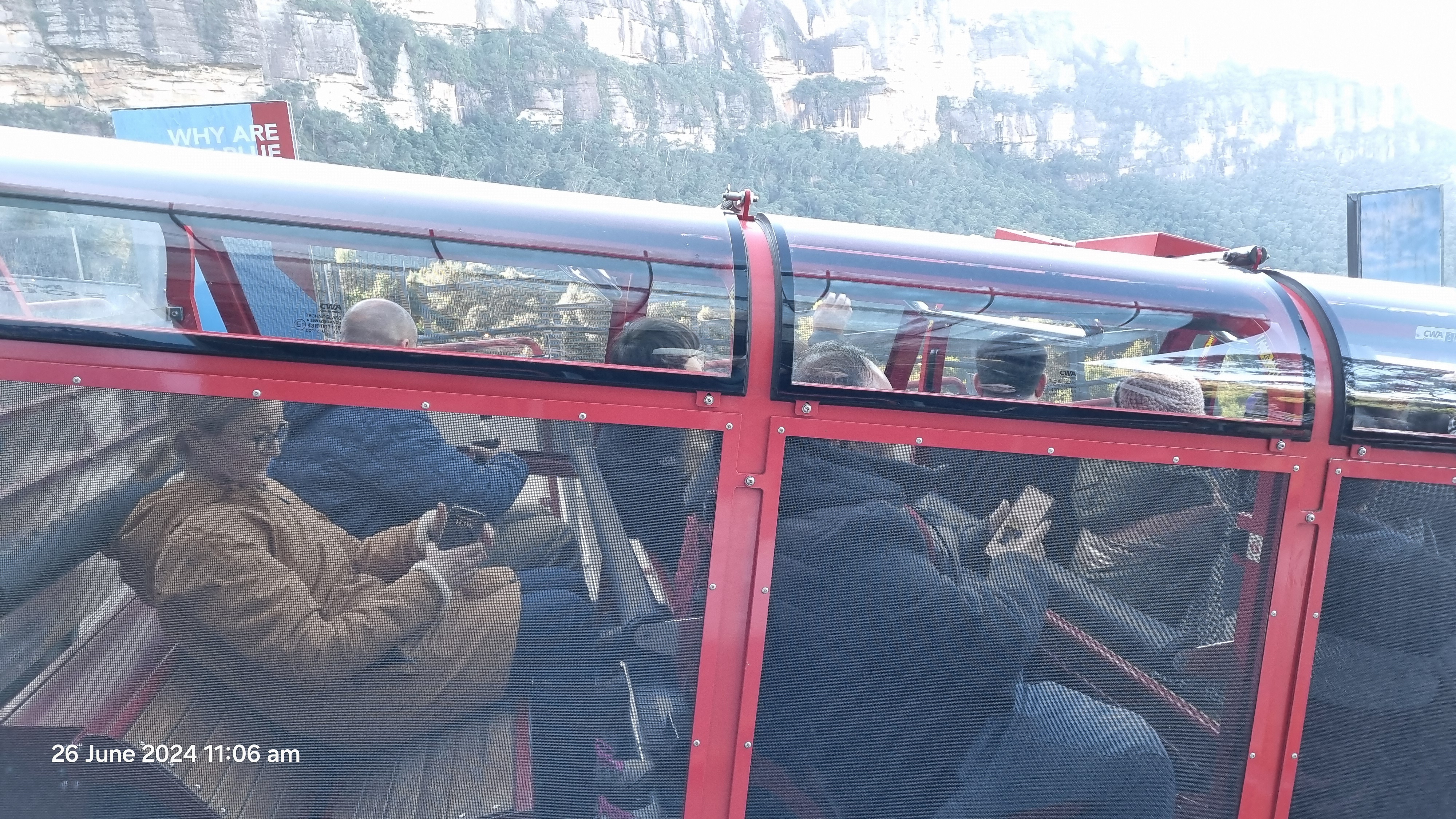 We had had some glimpses of the outlook on the mountains and it was a nice old station we had pulled into, another informative driver took us for a drive and then dropped us off at Scenic world, perhaps the main tourist spot on the mountains. We did the sky car, the cable car and the mountain railway all the time looking out over scenic mountains.