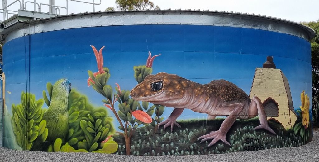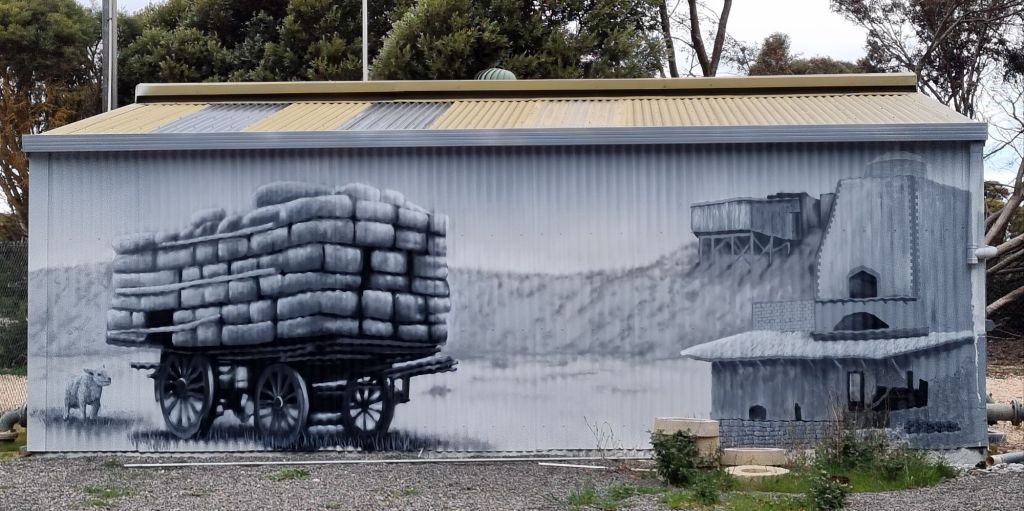 Every town has some form of art, but our favourite was the one at Wool Bale bay (named because there was a groove in the cliff, just wide enough to roll a wool bale down… how else would you get it to the ship?). It was just nice, and the grey and white murals were so effective.