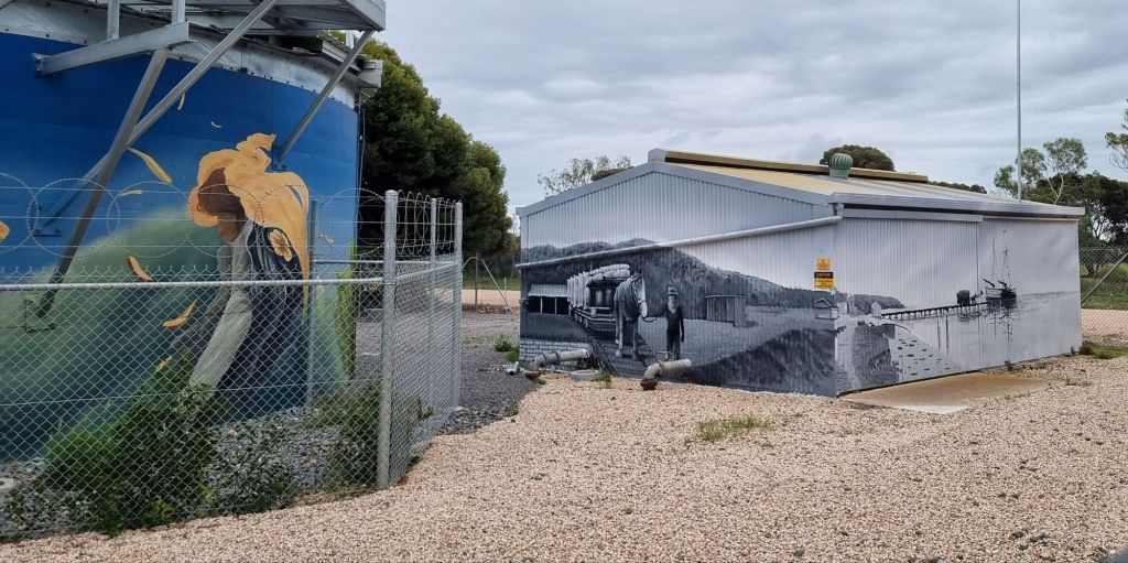 Working along the west coast from Moonta we kept calling in at little villages. Everyone has some claim to fame, some more than others.  Other towns not so much, they all have similar things in common like a jetty, water tower or water tank art, most have a population not much bigger than my thumb. Occasionally they even have more than 1 bitumen street .