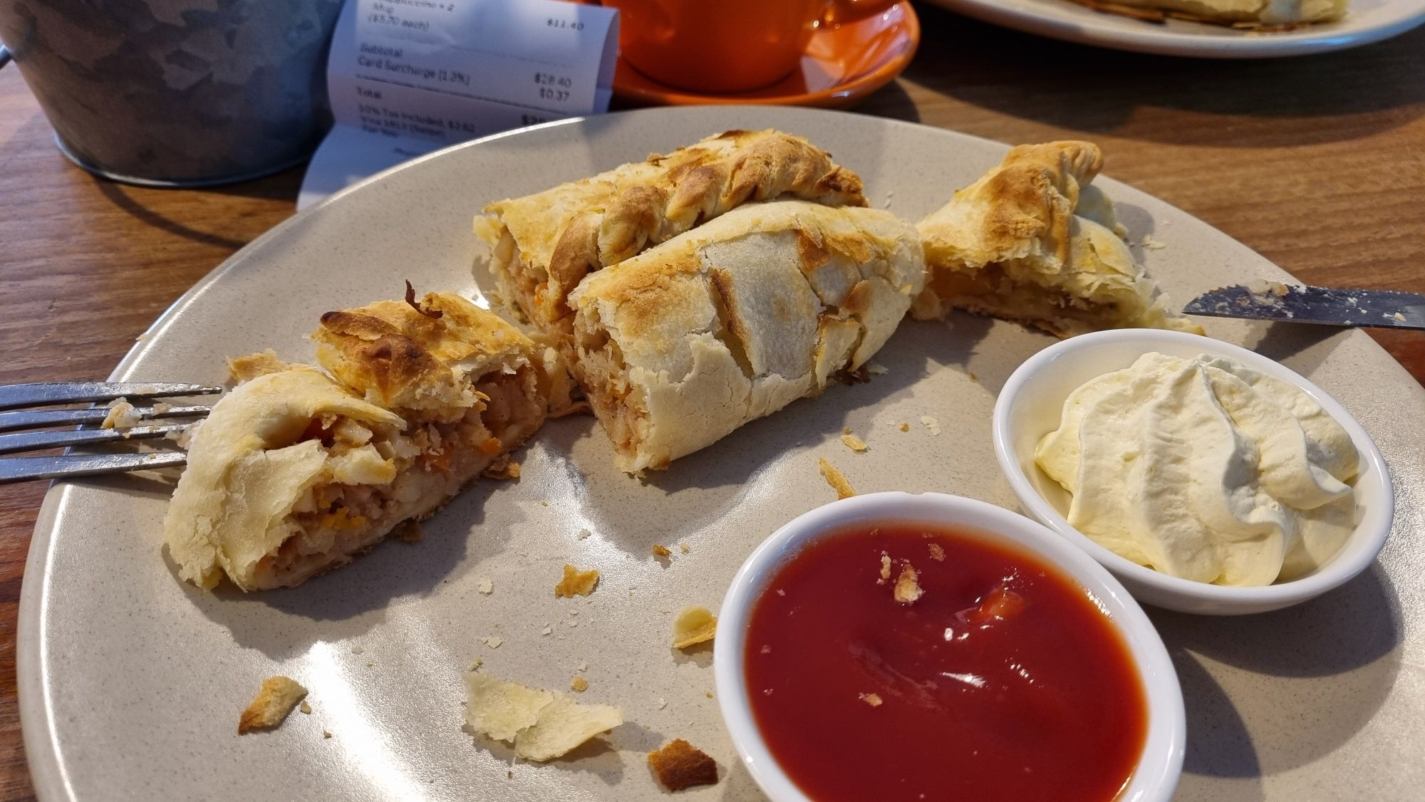 In Moonta, we had the delight of having a traditional Cornish pastie… at one end is the meat and veg mix, while at the other end is a little pocket of apple pie, all wrapped up in soft, delicious pastry. Ours was served with sauce and fresh whipped cream…. no doubt the miner’s wasn’t.