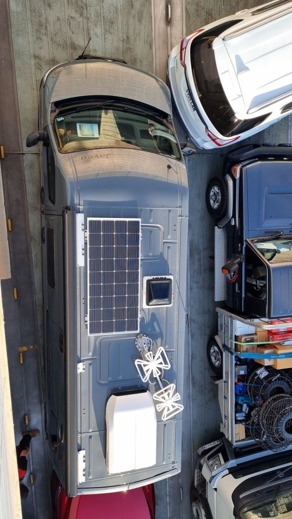 Jo did a great job backing Little Bus onto the ferry between the trucks, we settled back,munching on a box of shapes for the 45 minute trip to KI