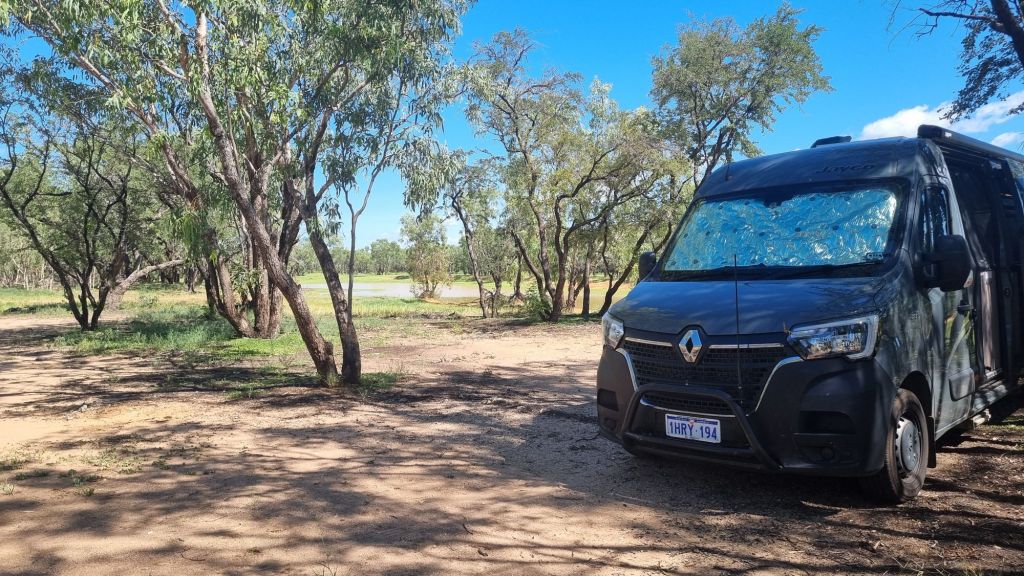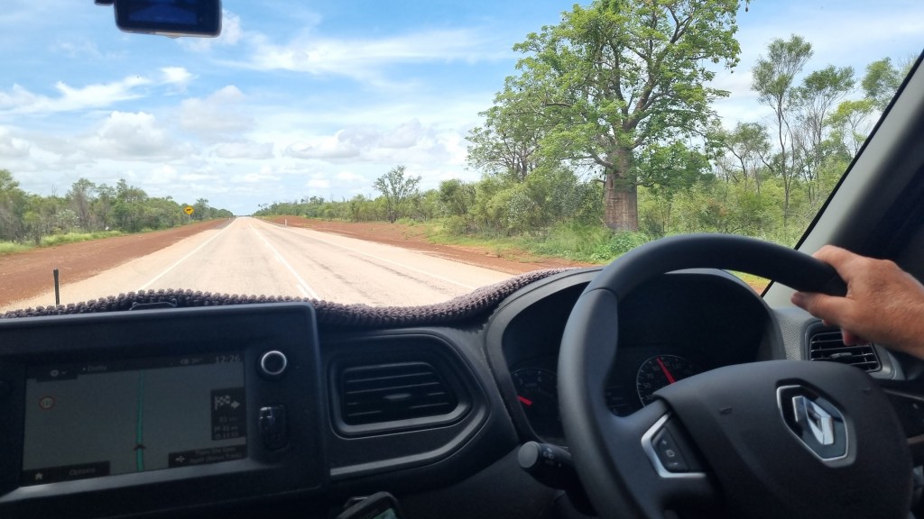 Now, a day or two later, we have figured that we are all alone. We have not seen any other traveller, no caravans, no backpacker’s tic tac campervans, no other tourist of any sort. Maybe it’s the road being closed at Port Hedland, or is it just that it’s the wet season and no other bugger wants to be up here. Either way, it’s just us and the highway.