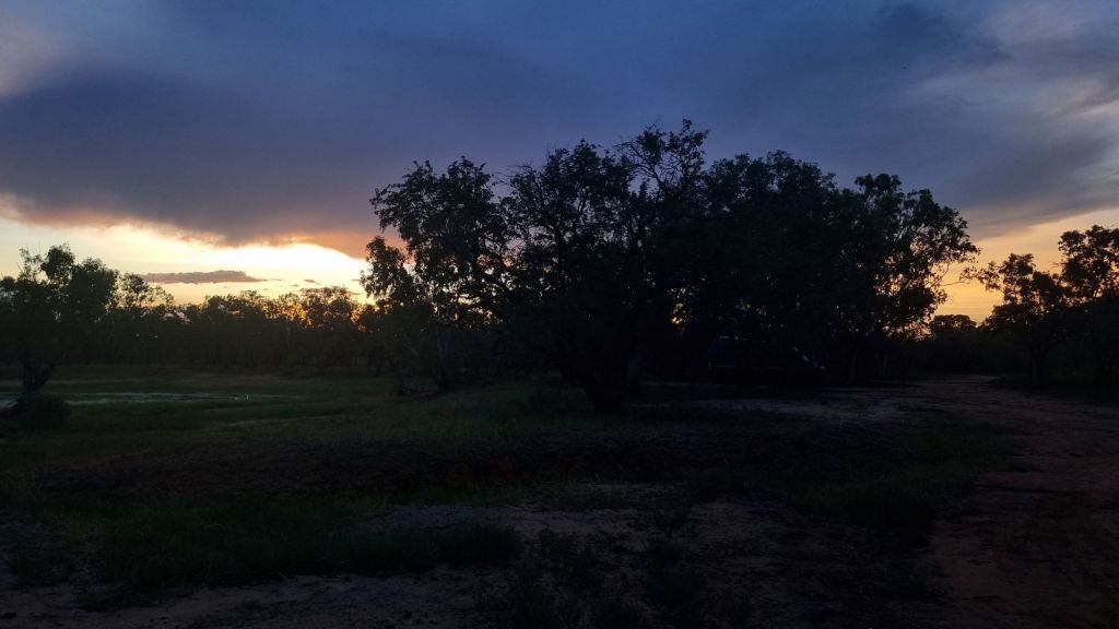 Spent a warm night last night at Ellendale Lagoon, all alone except for a brolga, a kite, some rainbow eaters, yellow honeyeaters, and the numerous assortment of usual everyday birdlife…. oh, and some cows, very inquisitive about us.