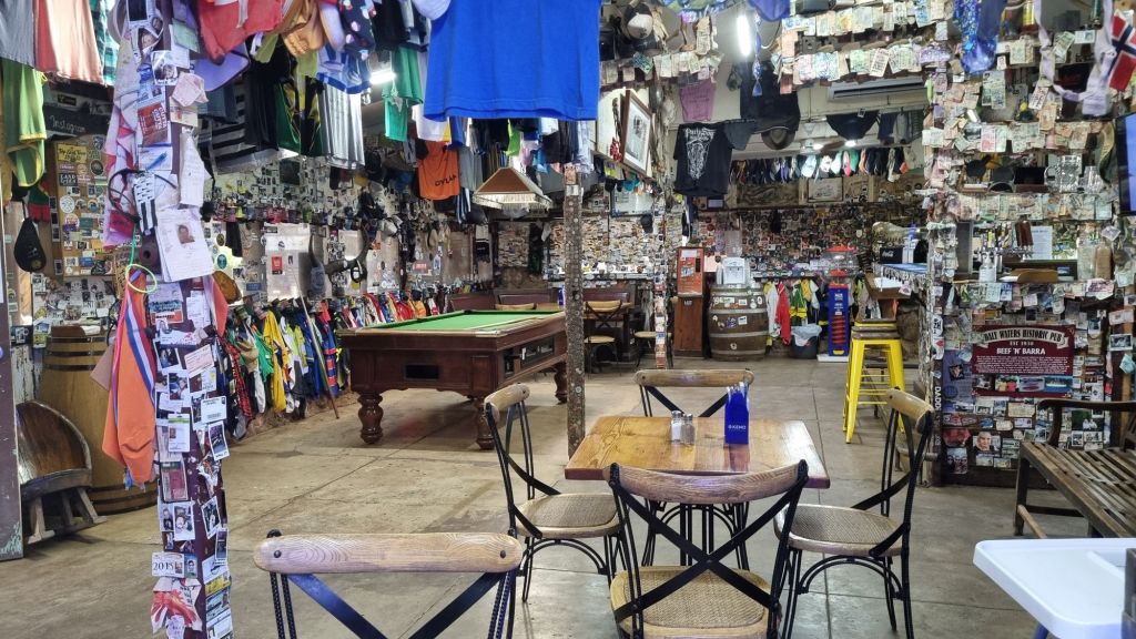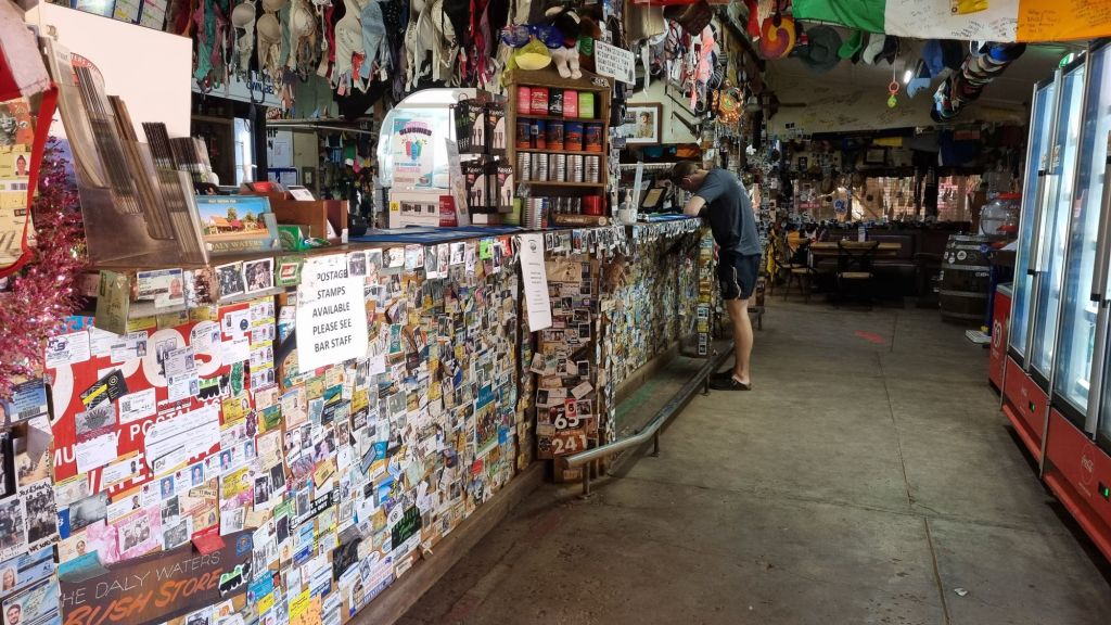 Still in the NT at the time of writing this, down at a 2 street town that some people may know…. Daly Waters. This is a place renknown for its Australian quirkiness, and collection of …. well…. stuff, apparently, in the dry, this place goes off, but in the wet… like today, it’s literally dead….not one single person in the pub at all.