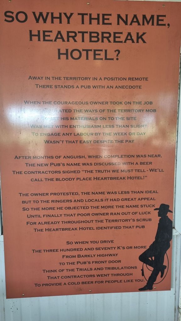 We left Daly Waters, having been really impressed by their facilities, great showers, shady sites, and free beer or wine… I ask you… who doesn’t like a free drink?