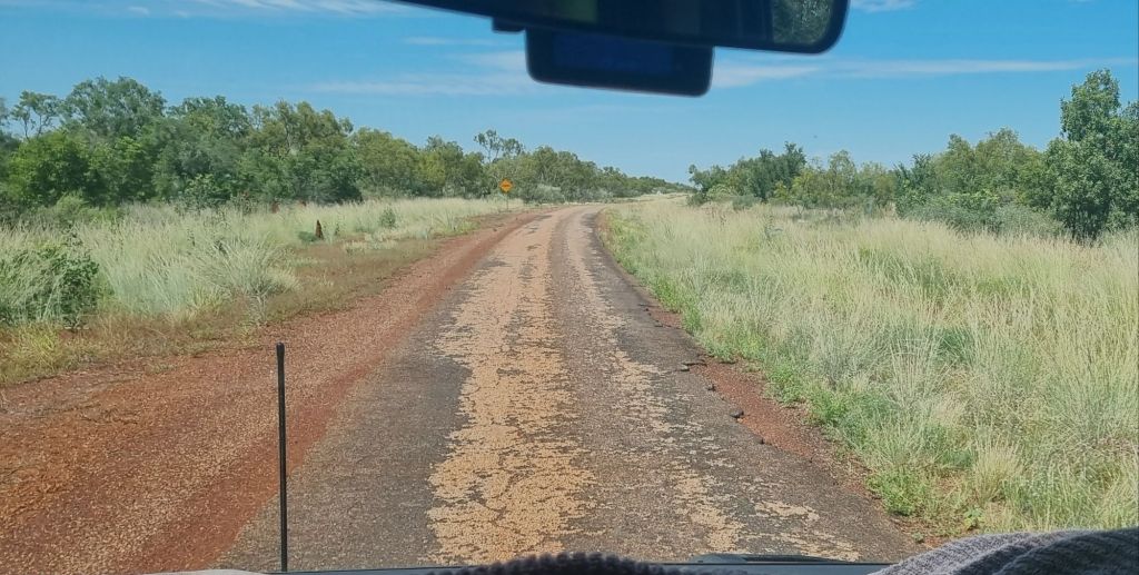 We have previously talked about NT road conditions, but yesterday, they took it to the next level.  When most people hear the word “highway” they think of a wide stretch of bitumen, sealed,two lanes of traffic, one for each direction, generally enabling you to do a reasonable speed… yes?. But not here, not on the roads into and out of Borroloola. But where the heck is Borroloola?